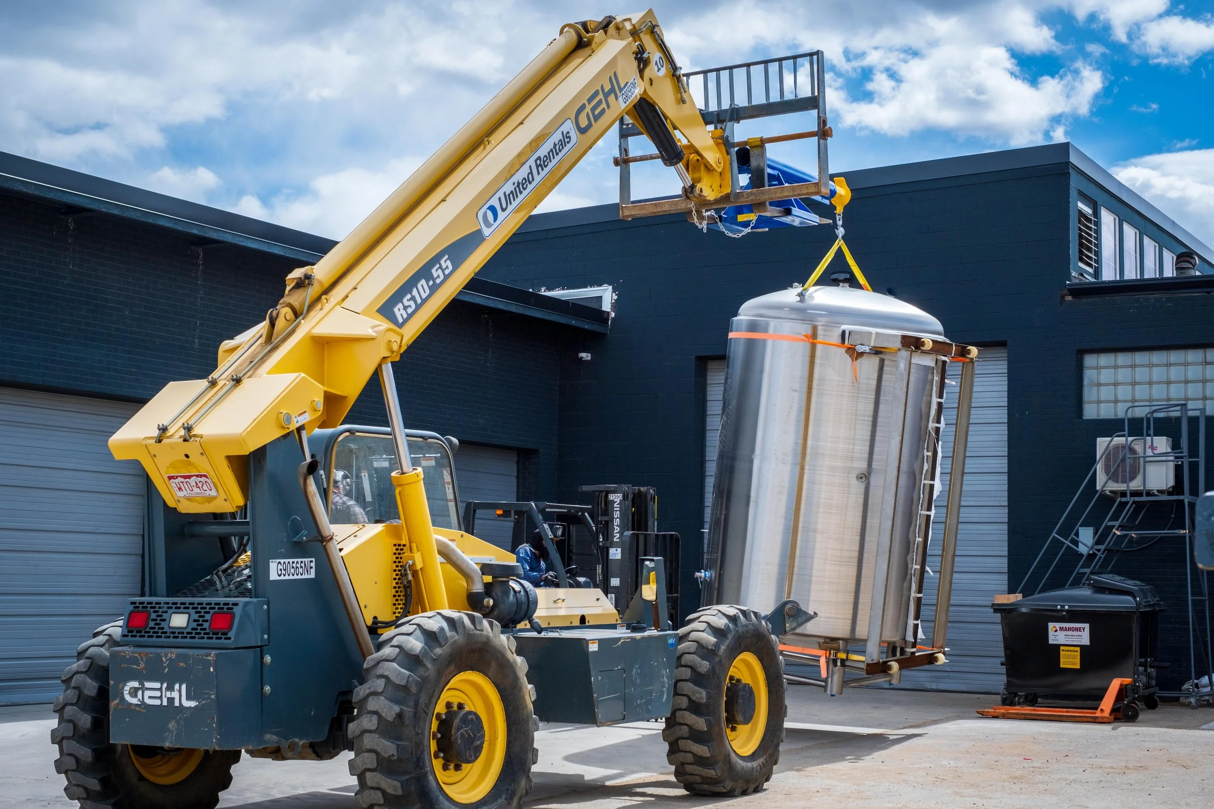 The new brite tank being installed at WeldWerks Brewing Co., 508 8th Avenue, Greeley, is only one element of many that created the brewery’s new 30-barrel 4-vessel steam brewhouse at the end of 2023. The expansion space enables WeldWerks to reach 26 target markets across the country, allowing it to more than double its reach in 2024. Photo by WeldWerks Brewing Co.