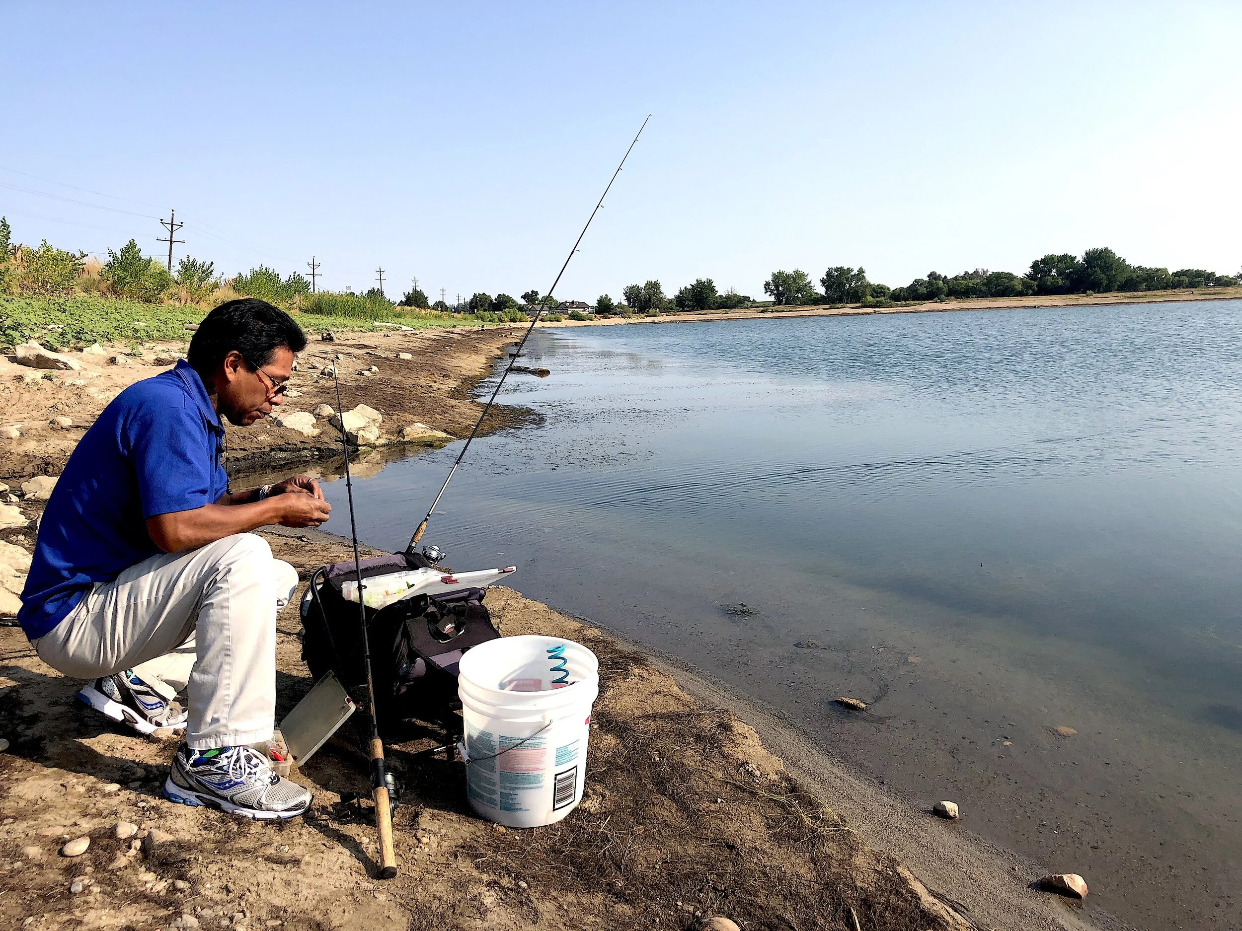 Juan Jiminez spends time fishing at Poudre Ponds before Colorado Parks and Wildlife drains the water to make repairs. Photo by Dan England.