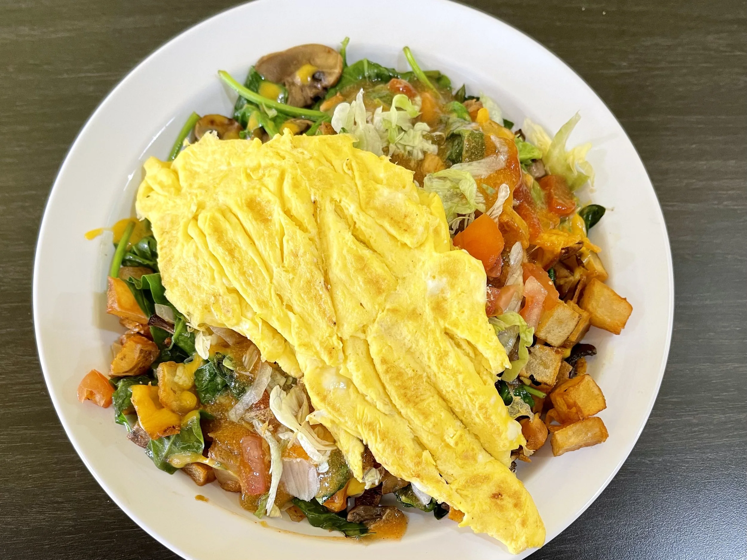 When she first opened the new eatery, everything on the menu was stumbling-related, she explained. There were Stumbling Skillets (breakfast skillets served with eggs, potatoes and toppings of choice); All Thumbs (breakfast sandwiches served on bagels or Kaiser buns; and Tuck-n-Rolls (speaking to Marcus’ gymnast days, but wrapped in a burrito).
