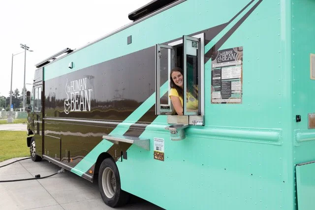 The Human Bean in Northern Colorado encompasses 11 freestanding double-sided drive-thrus and a coffee truck the size of a bus stationed on CSU’s campus in Fort Collins. The company sends its baristas to truck driving school to learn how to drive it. Photo courtesy of The Human Bean.
